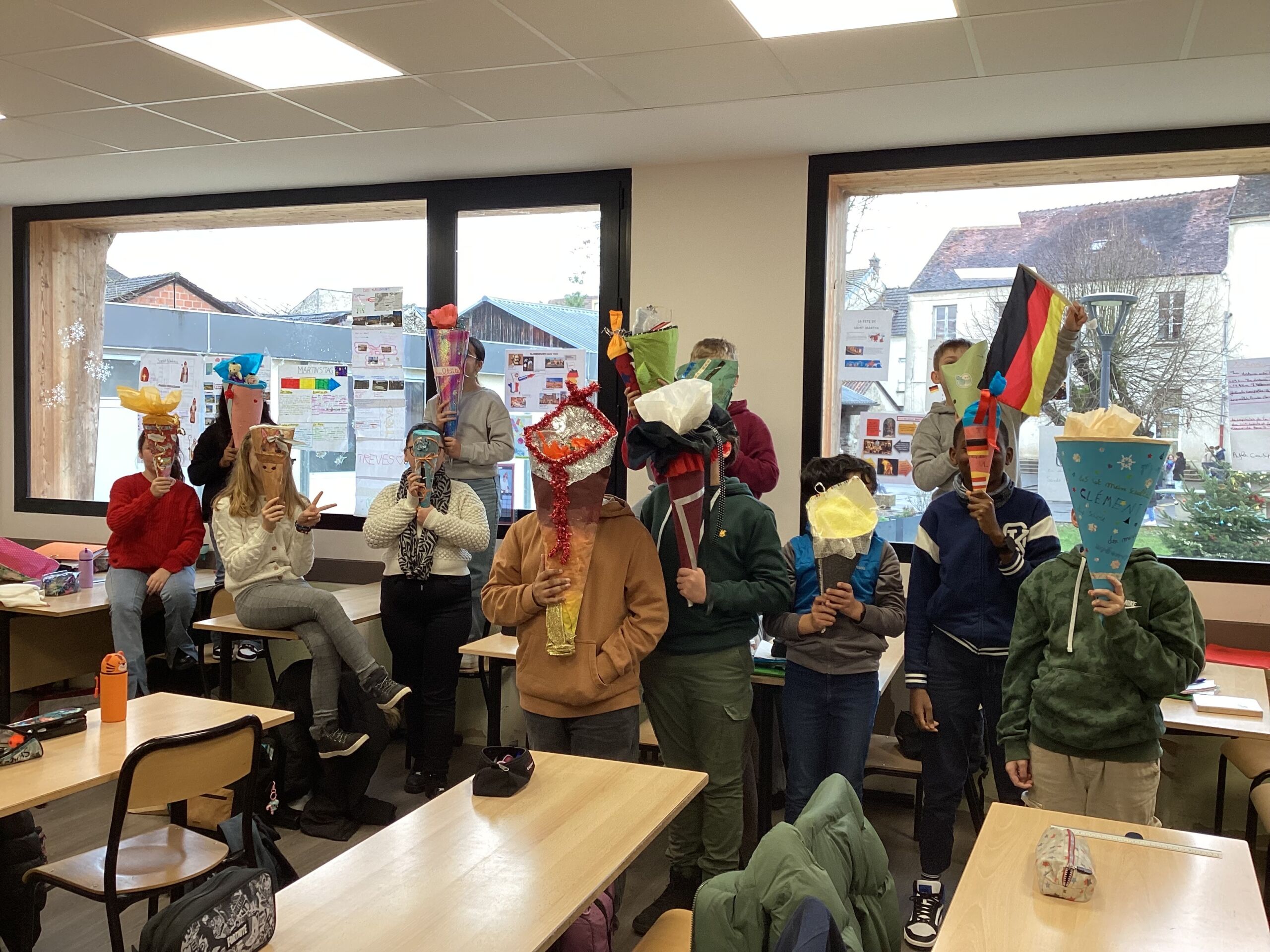 Les germanistes de 6ieme sont fiers de leur Schultüte , le fameux cornet scolaire pour marquer une nouvelle année. C était un bon moment de partage et de convivialité en ouvrant le cornet rempli d affaires scolaires et de sucreries allemandes Depuis septembre , nous avons travaillé sur les traditions allemandes.